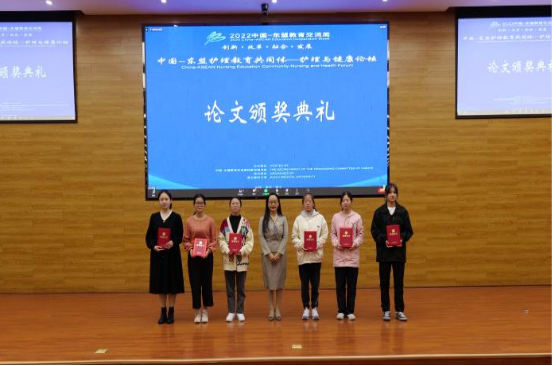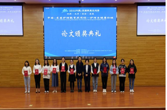 闭幕式上,护理公司党委副书记、经理邓仁丽就本次论坛的筹备工作、学术交流、壁报展示和论文投稿及评审工作情况进行总结,并向出席本次论坛的领导、专家和师生表示诚挚的感谢。同时提出,在公司党委的领导下,mk体育继续围绕“创新、改革、融合、发展”的主题,深化中国与东盟国家高等护理学科的交流与合作,持续为广大护理同仁提供交流的机会,把交流周办成遵医品牌,不断为中国-东盟教育交流增光添彩!随后,护理公司党委副书记陈伟、副经理周静分别宣布一、二、三等奖获奖名单,党委副书记/经理邓仁丽、附属医院护理部主任/mk体育副经理黄仕明、mk体育副经理王连红分别为获奖老师和员工颁奖并表示祝贺。