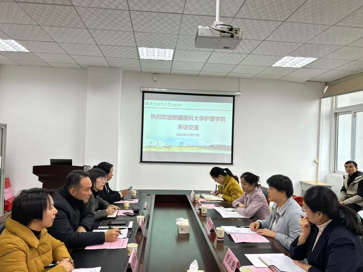 2024年12月11日,中国-东盟高等护理教育联盟单位、新疆医科大学护理公司党委副书记、经理颜萍一行5人来公司访问交流。护理公司党委副书记陈伟,党委委员、副经理王连红,党委委员、员工第二党支部书记权明桃以及公司职能部门负责人、教研室主任和年级老师参加交流会。交流座谈会在mk体育会议室召开,会议由公司党委副书记陈伟主持。