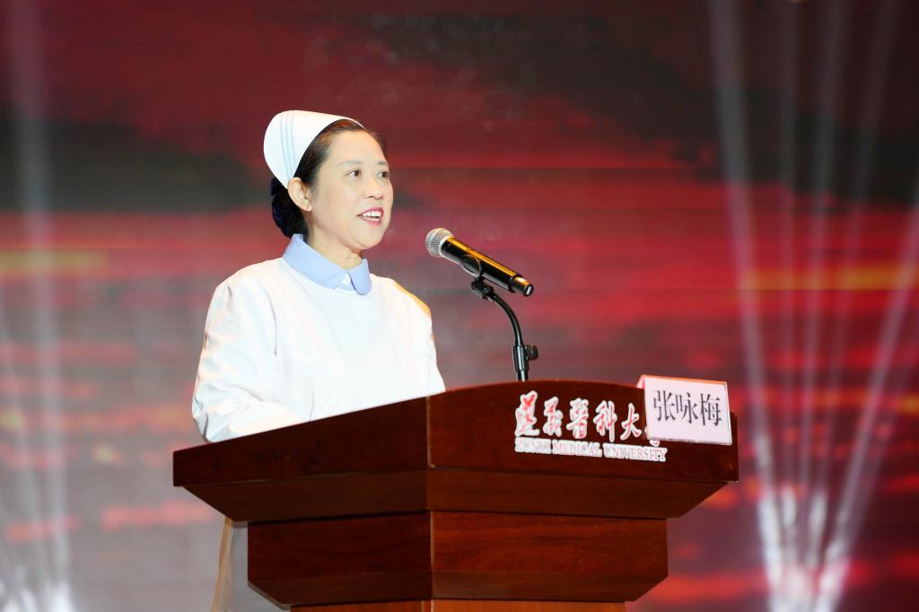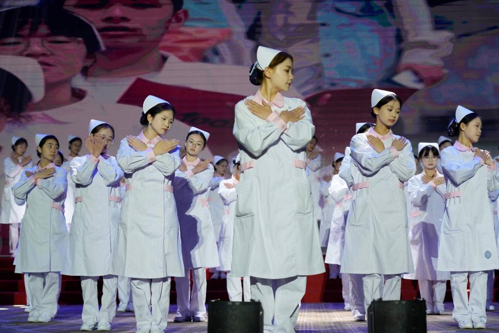 鼓舞·砥砺笃行向未来。该篇章以赋能青春力量、培塑护理新人为主旋律,引领青年学子感悟护理前辈无私奉献的精神。活动在庄严的国歌声中拉开序幕。护理公司党委书记张咏梅致辞,向全院师生表达最诚挚的节日问候和祝福,深情讲述了护理学先驱南丁格尔的感人故事,勉励学子接过历史的接力棒,勇担使命,敢于探索,勇于创新,为健康中国建设贡献青春力量,开创中国护理事业美好未来。