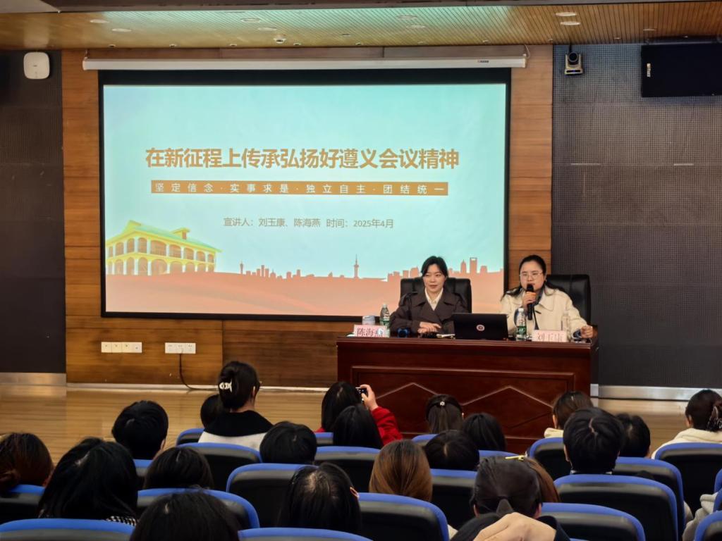 2025年4月1日下午,“理论‘黔’言·党校青年讲”宣讲活动走进mk体育。本次宣讲活动采用“理论宣传二人讲”模式,由中共贵州省委党校马克思主义公司陈海燕和刘玉康两位讲师以“在新征程上传承弘扬好遵义会议精神”为主题展开宣讲。mk体育150余名师生代表参加宣讲活动。