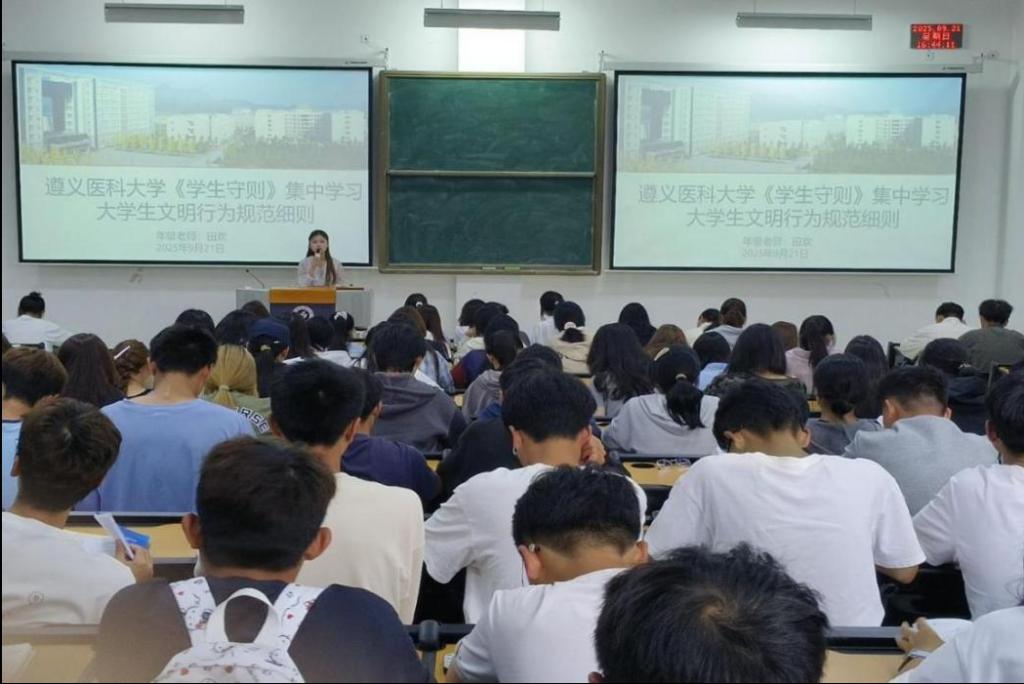 明规·笃行:学习规章制度,倡树优良学风10月8日18:00,年级辅导员权明桃、田欢在三教阶梯教室组织全体新生系统学习《员工守则》校园文明行为规范、公寓管理办法等规章制度,并融入诚信、自律、换位思考等品质教育内容。随后,公司发起学风建设“三无三有”倡议,倡导“课堂无手机、课余无游戏、日常无追剧”,鼓励同学们结交“书香友、运动友、实践友”,共同营造积极健康、向学力行的成长环境。