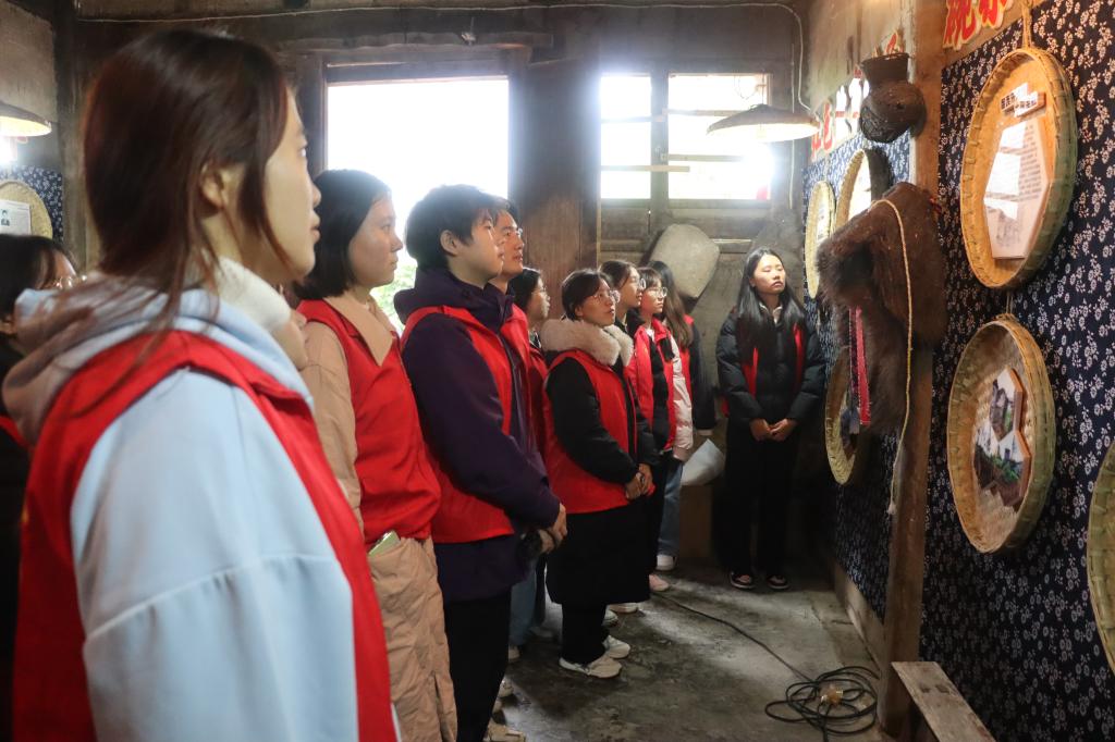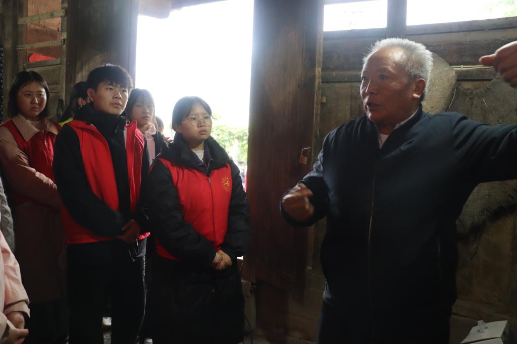 上午9:00,师生们走进平溪村磨刀溪战斗遗址陈列室,在退休老教师、实践育人导师罗光发的深情讲述中,重温那段峥嵘岁月。他娓娓道来当年红军在磨刀溪激烈战斗的经过,以及当地群众舍生忘死掩护红军的感人故事。一个个真实的故事,一幕幕军民鱼水情深的场景,深深打动了在场的每一位师生,也在他们心中埋下了红色信仰的种子。