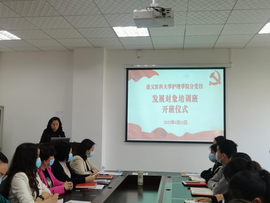 4月22日18:00,mk体育分党校2022年春季学期发展对象培训在mk体育6楼会议室(新蒲校区)举行。护理公司党委书记、分党校董事长张咏梅,党委委员、员工第二党支部书记权明桃,各年级辅导员以及50名发展对象参加了开班仪式。