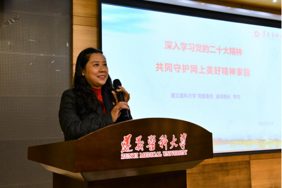 李均部长以《深入学习党的二十大精神共同守护网上美好精神家园》为主题,向大家讲述了党的二十大召开的重大意义,分析了党的二十大报告的核心要义,并结合公司发展实际,介绍了近几年公司取得的成就,勉励同学们深入学习贯彻党的二十大精神,在学习和工作中齐心助力高质量发展,为全面建成社会主义现代化强国、实现第二个百年奋斗目标贡献自己的青春力量。随后,李均部长向大家讲解了网络安全相关方面的法律法规,希望同学们增强网络安全意识,养成文明健康的网络生活方式,培育崇德向善的网络行为规范,做合格网民,共同守护网上美好家园。