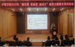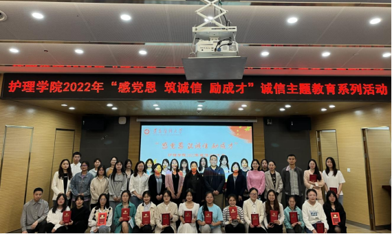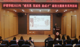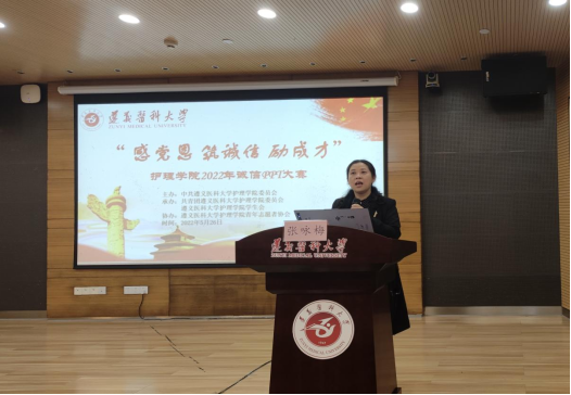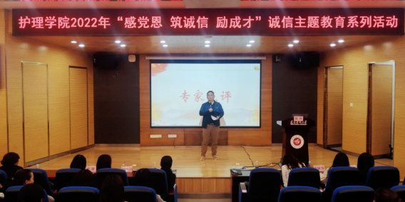 5月26日18:30,mk体育在新蒲校区图书馆一楼1号报告厅举行了“感党恩 筑诚信 励成才”诚信PPT大赛。护理公司党委书记张咏梅,党委副书记陈伟,员工第二党支部书记权明桃,研究生党支部书记杨艳,员工第三党支部副书记、团委负责人陈娅,以及各年级辅导员老师和员工参加了活动。