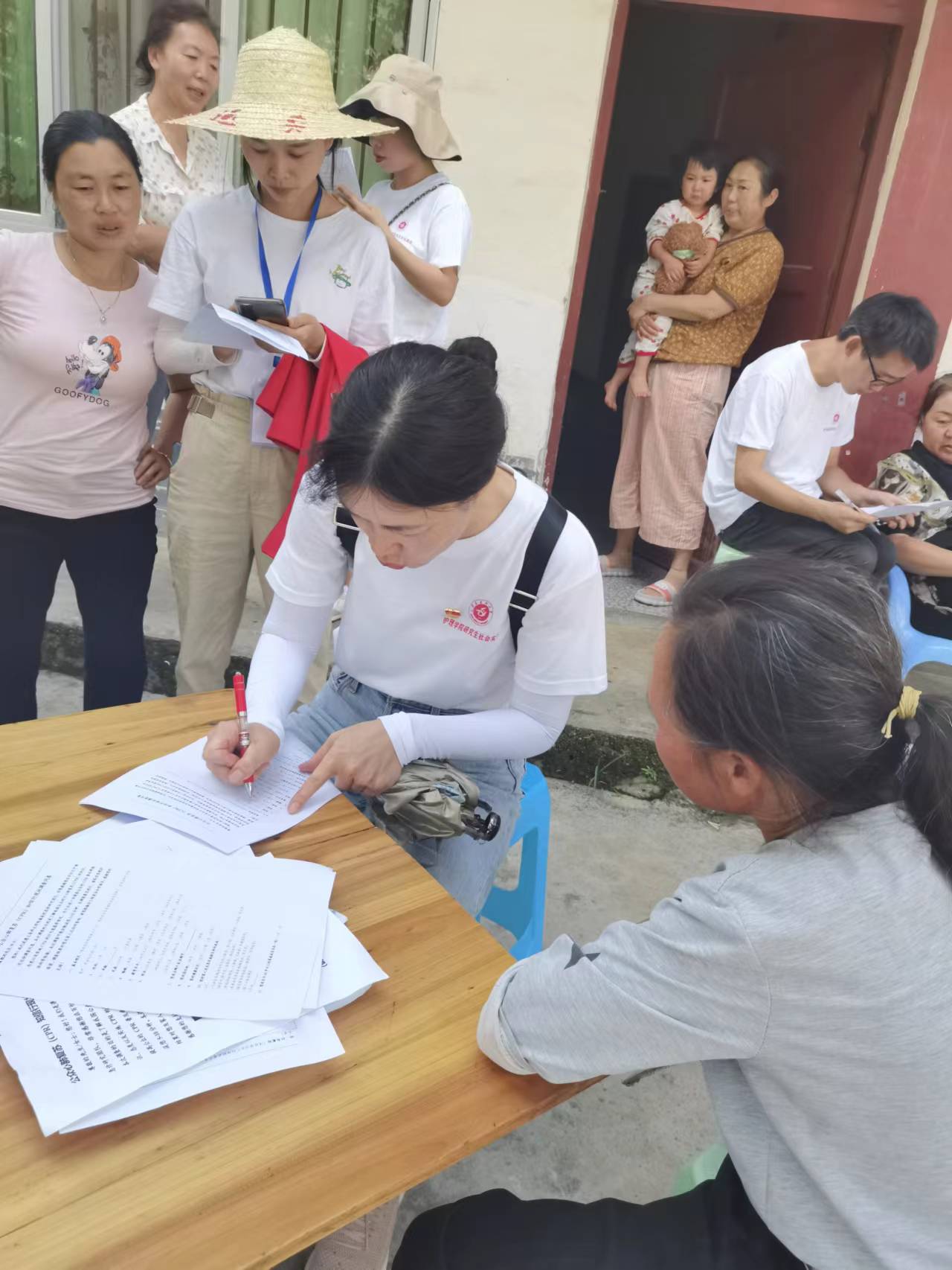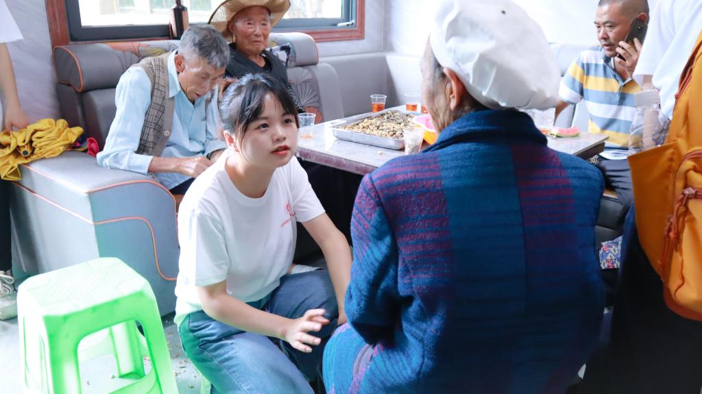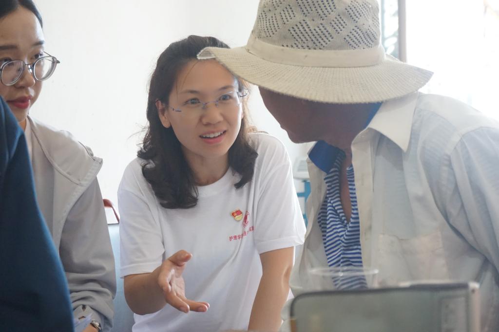 与老人们愉快聊天的过程宣讲老年健康政策,为老人解答健康疑问