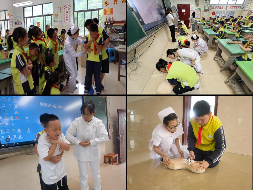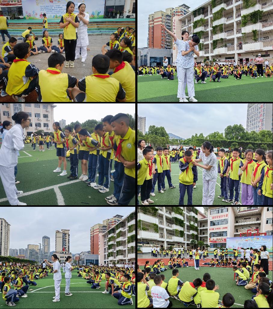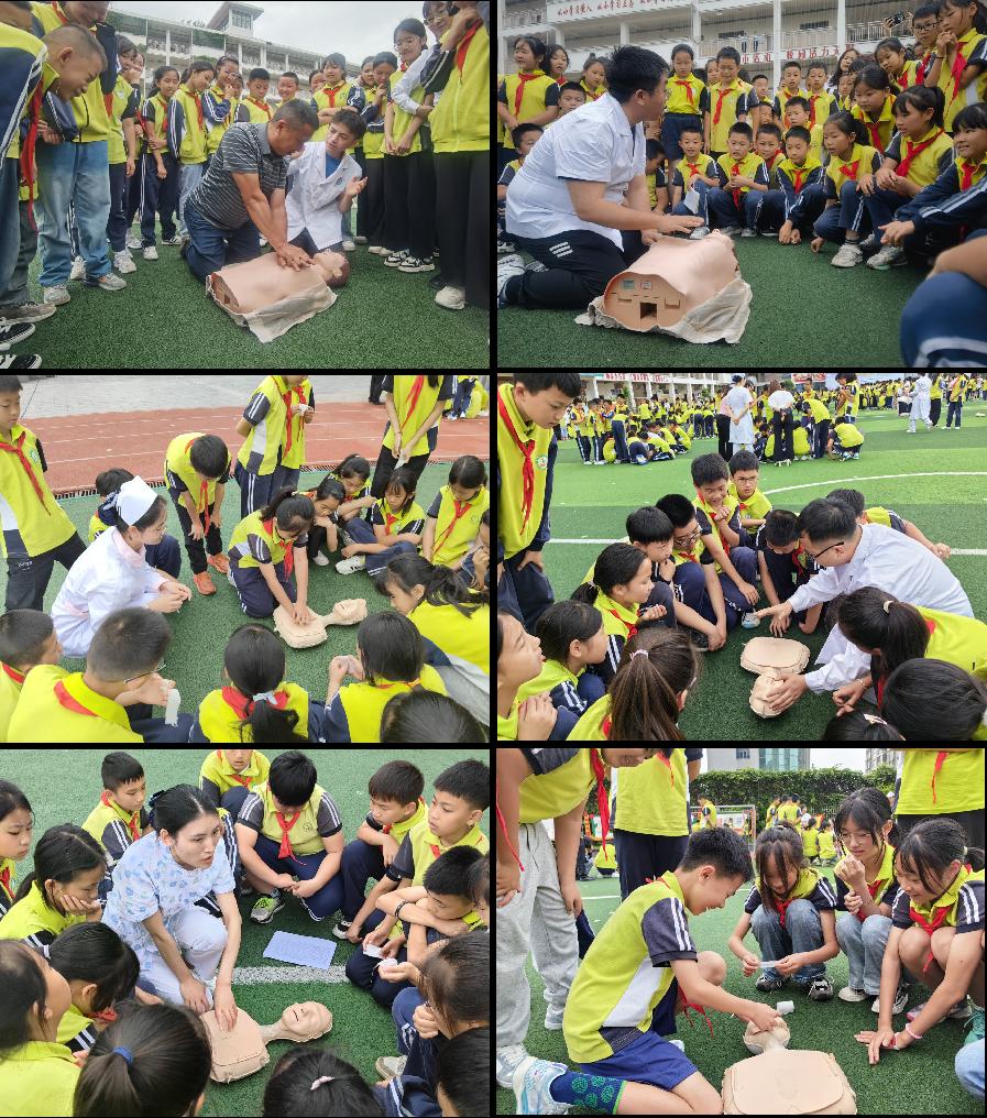 急救知识进校园,守护生命伴成长。仪式结束,公司师生分别在操场、教室采用“理论讲解+模拟示范+操作体验”的方式进行急救知识培训。针对三、四年级员工,师生们用通俗易懂的语言结合动作示范讲解了海姆立克急救法,如何用“剪刀-石头-布”的方法确定位置,如何以正确的操作冲击患者腹部直至排出异物,并指导700余员工完成操作体验。针对五、六年级员工,师生们讲解了什么是急救“黄金四分钟”,并借助人体模型演示了心肺复苏的操作步骤,600余名师生积极参与模拟演练,对于按压姿势、按压位置等问题均一一指导。