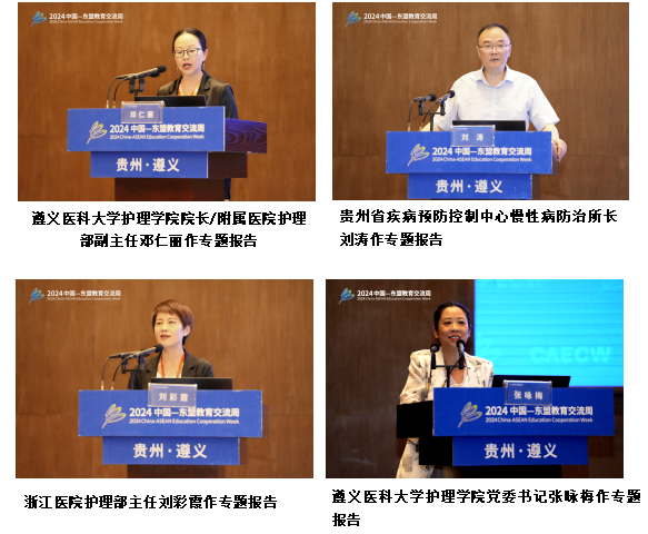 8月24日上午,“中国-东盟高等护理教育共同体—护理质量与健康发展论坛”开幕式在遵义创元千禧酒店举行。mksports党委委员、副董事长龚其海,香港东华公司mk体育副经理林清,遵义市人民政府副秘书长汪峰,贵州省科技厅副厅长杨友昌先后致辞,并为中国-东盟高等护理教育联盟新增单位授牌。mk体育经理邓仁丽作为联盟单位理事长身份表示,各联盟单位将继续发挥高等护理教育共同体作用,不断促进护理教育理念交流融合,持续提升中国与东盟国家护理人才培养质量,为助推中国与东盟各国健康事业高质量发展做出更大贡献。