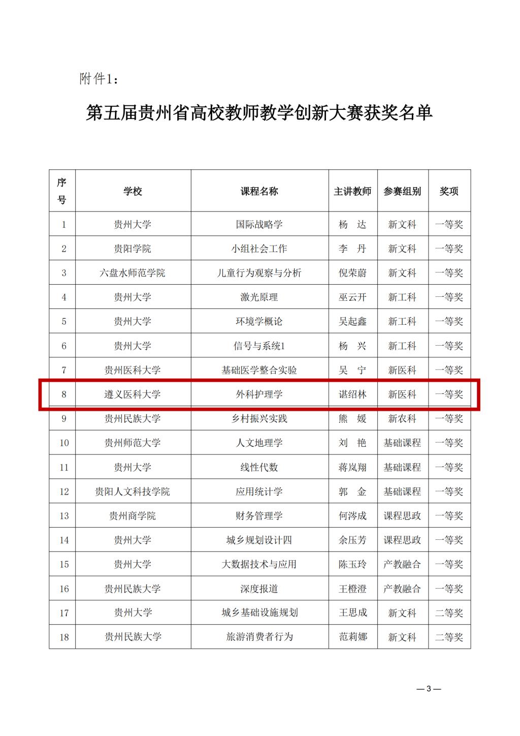 近日,mk体育内外科护理学教研室《外科护理学》教师团队(主讲教师:谌绍林,团队成员:曾芬莲、陈硕贞、邵星)在第五届贵州省高校教师教学创新大赛中斩获新医科组一等奖,并拟推荐参加全国高校教师教学创新大赛。此次成绩的获得,实现了公司教师在教学创新比赛的历史性突破。