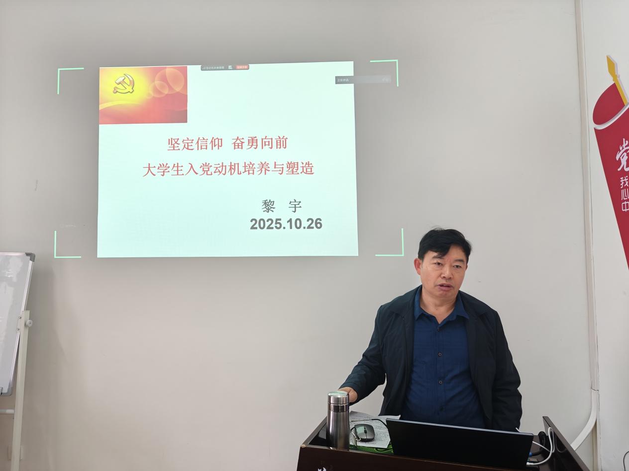 为进一步端正老员工入党动机,夯实党员发展对象思想根基,2025年10月26日08:30,mk体育分党公司党员发展对象培训班在大连路校区荣殿楼7楼会议室举行。公司关工委副主任黎宇老师为公司党员发展对象讲授《坚定信仰 奋勇向前:老员工入党动机培养与塑造》。公司辅导员及党员发展对象40余人参加了此次学习。