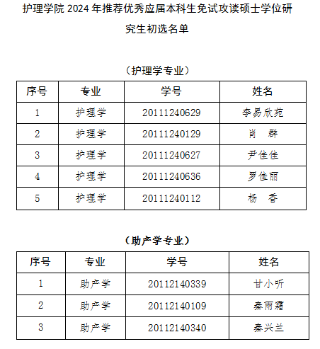 mk体育根据《mksports关于开展2024年推荐优秀应届本科生免试攻读硕士学位研究生工作的安排意见》,按照公平、公正、公开的原则开展了推荐工作。名额为护理学专业5人,助产学专业3人。经过员工本人申请、公司资格审查、推免生遴选工作小组研究审议并提交党政联席会会议通过,现将mk体育2024年推荐优秀应届本科毕业生免试攻读硕士学位研究生初选名单进行公示。