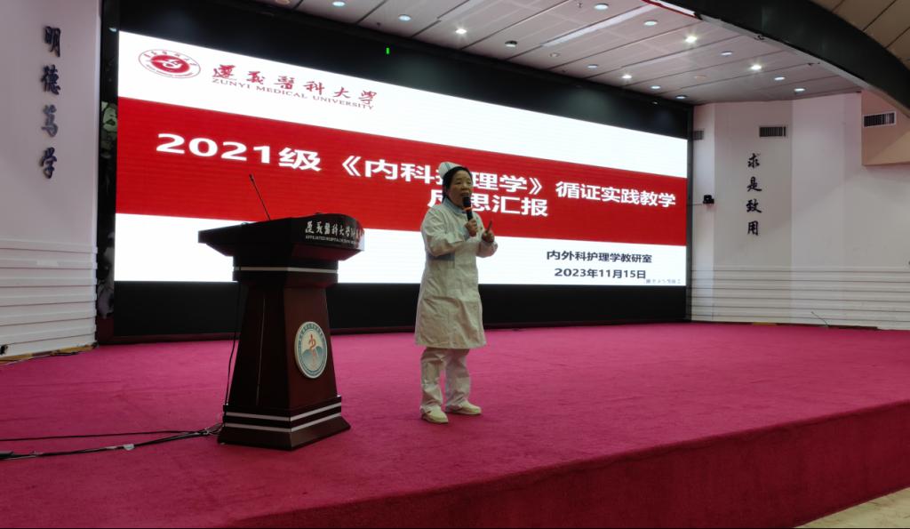 内外科护理学教研室于11月15日在附属医院第二住院楼四楼多功能厅开展循证见习教学反思汇报活动,本次活动由教研室主任曾芬莲老师主持,并邀请了年级老师权明桃、田欢、高婷婷和多名内科和外科的循证见习带教老师担任评委,员工以小组为单位针对本学期开展的循证见习进行了8—10分钟的反思汇报活动,同学们表示在此次循证实践的过程中受益匪浅,通过教师指导以及收集临床病人资料确立问题,查找各类中英文数据库文献资料等方式,拟定病人个性化的护理计划方案,评价护理效果,将学习到的理论知识转化为临床技能,在此过程中逐步学会并渗透“以客观的科学研究结果为临床决策依据”的循证实践核心思想,从而更好地理解循证护理实践的全过程,并提高了团队协作能力和沟通技巧。